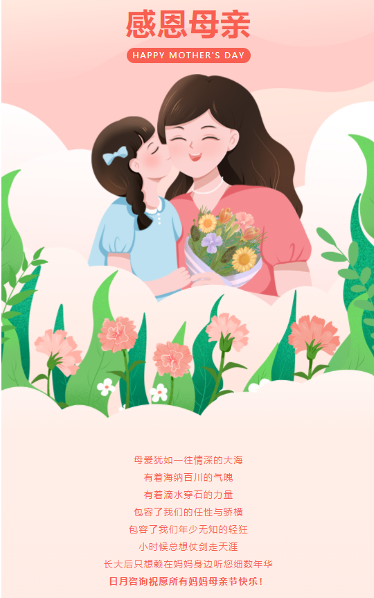 岁月绵长,唯爱永恒,日月咨询祝愿所有的妈妈幸福安康!母亲节快乐!