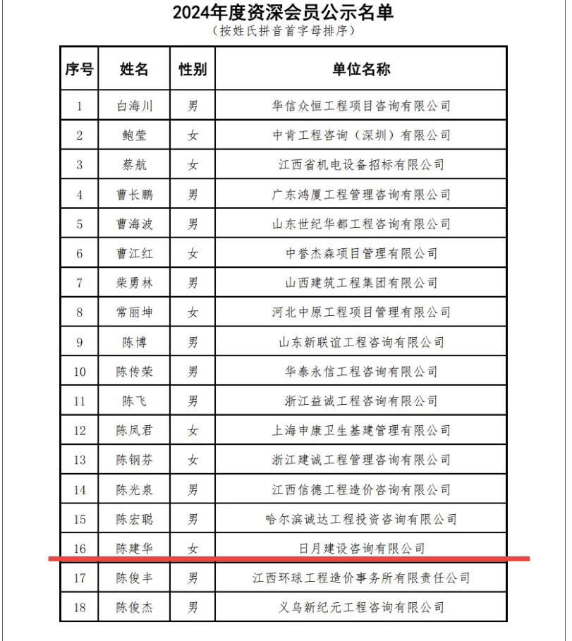 喜报 我司陈建华同志成功入选中国建设工程造价管理协会2024年度会员