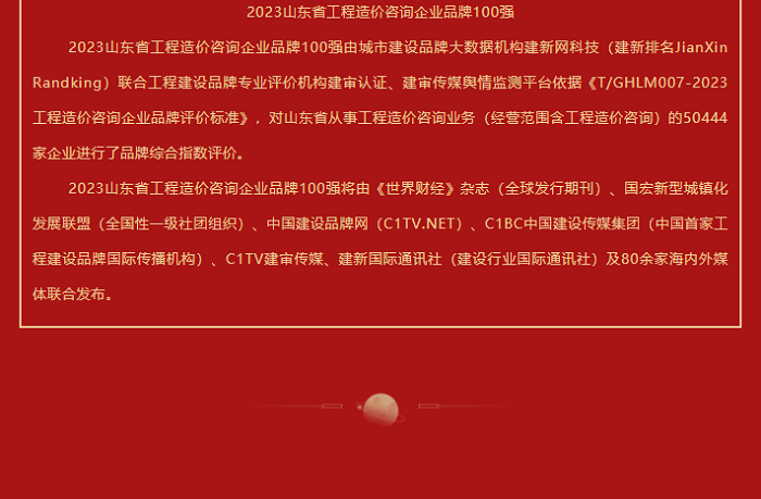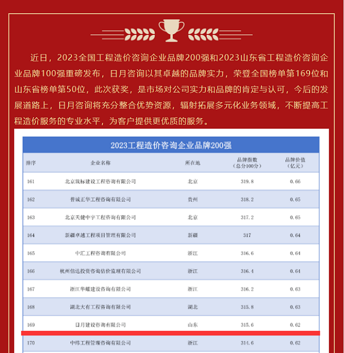 喜报 日月咨询荣登2023全国工程造价咨询企业品牌200强、2023山东省工程造价咨询企业品牌100强