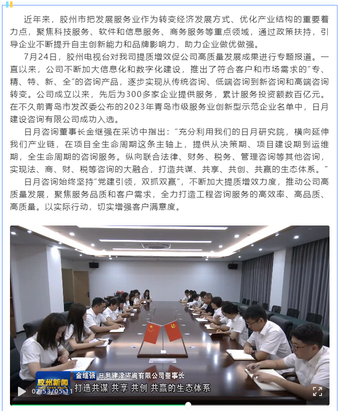 提质增效促公司高质量发展,胶州电视台对我司进行专题采访报道