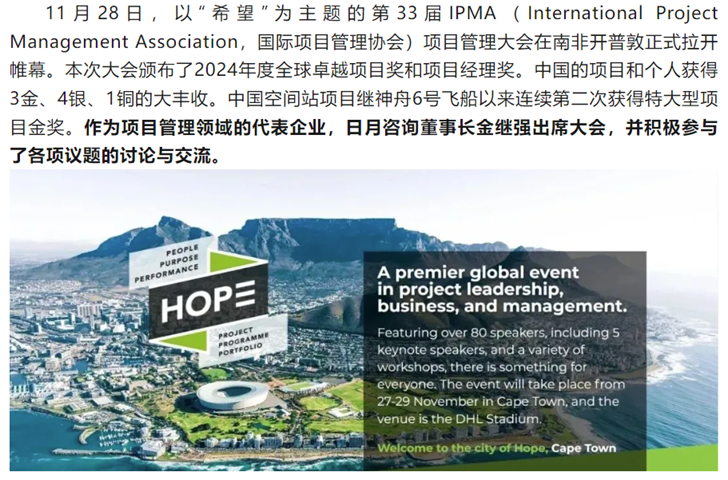 日月咨询董事长金继强参加第33届IPMA全球项目管理大会
